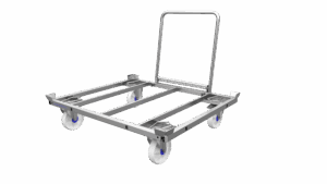 The LiftLiner® is a compact, fully electric tugger train designed to replace forklifts in tight and demanding production environments. With a unique double-loading system, it allows for fast, ergonomic loading and unloading from either side—without stopping the train. Its tight turning radius, lifting/tilting technology, and compatibility with Daughter Carts make it ideal for high-throughput, forklift-free logistics.