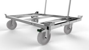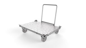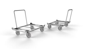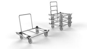 Der Euro-Daughter Cart ist ein Rollwagen, der für den effizienten Transport von Europaletten oder faltbaren Käfigen im Euroformat in Lagern und Produktionslinien entwickelt wurde. Er unterstützt sowohl die manuelle Handhabung als auch die Integration mit dem LiftLiner-Zugsystem und ist damit ideal für zukunftsorientierte Logistikabläufe. Dieses robuste Gerät verfügt über integrierte Eckstützen, Stapelschalen für eine kompakte Lagerung und eine hervorragende Manövrierfähigkeit – leicht von einer Person zu handhaben.