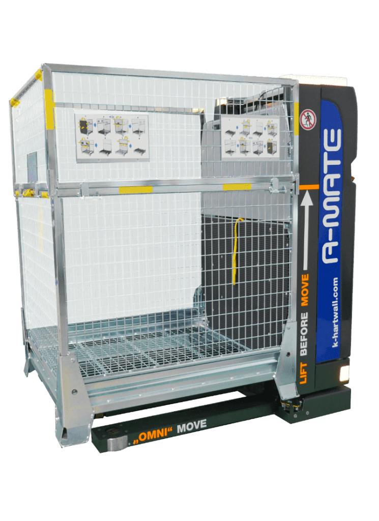 A-MATE® FreeLift ist ein Fahrerloses Transportsystem (FTS) für den Transport logistischer Einheiten, wie zum Beispiel Paletten oder Ladungsträger, in anspruchsvollen Produktions- und Logistikumgebungen (Lagerhallen oder Sortierzentren).